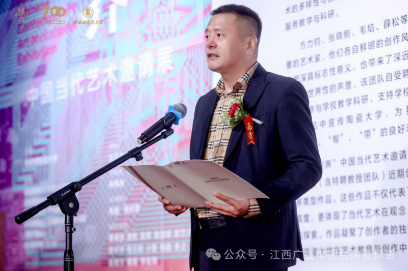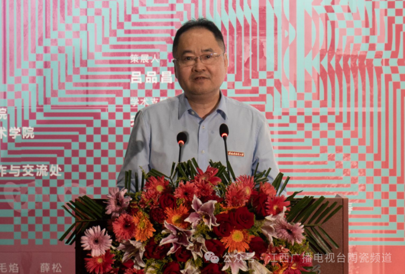 景德镇陶瓷大学党委副书记吴磊宣布展览开幕