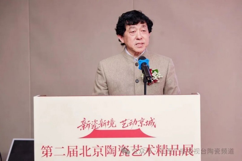 开幕式上,承办单位代表、北京陶瓷艺术馆馆长陈美霞致欢迎词,向所有支持展览的单位与个人表达感谢;总策展人陈烈汉做展览筹备汇报,详细阐述了从作品征集到专家评审的全流程,强调本届展览在规模与质量上的突破,提到最终选出 157 位作者的 287 件(套)作品参展,涵盖艺术陶瓷、生活陶瓷、北京元素文创产品等多个类别。随后,才大颖理事长、秦璞副会长、魏连伟会长分别致辞,从不同角度肯定了北京陶瓷艺术的历史价值与当代意义,呼吁社会各界共同助力传统工艺的传承与创新。学术支持单位代表、景德镇陶瓷大学副校长张婧婧女士从学术及产学研协同角度发言;参展作者代表、北京工艺美术大师、北京市非物质文化遗产传承人周晓明则以创作者视角,分享了陶瓷艺术创作中的坚守与探索,引发在场嘉宾共鸣。此外,民盟中央文化委员会副主任、民盟北京市委常委、一级巡视员宋慰祖先生,十三届全国政协常委、中国文联原党组成员、书记处书记、中国作家协会副主席白庚胜先生也先后致辞,为陶瓷艺术的传承创新与产业发展建言献策。